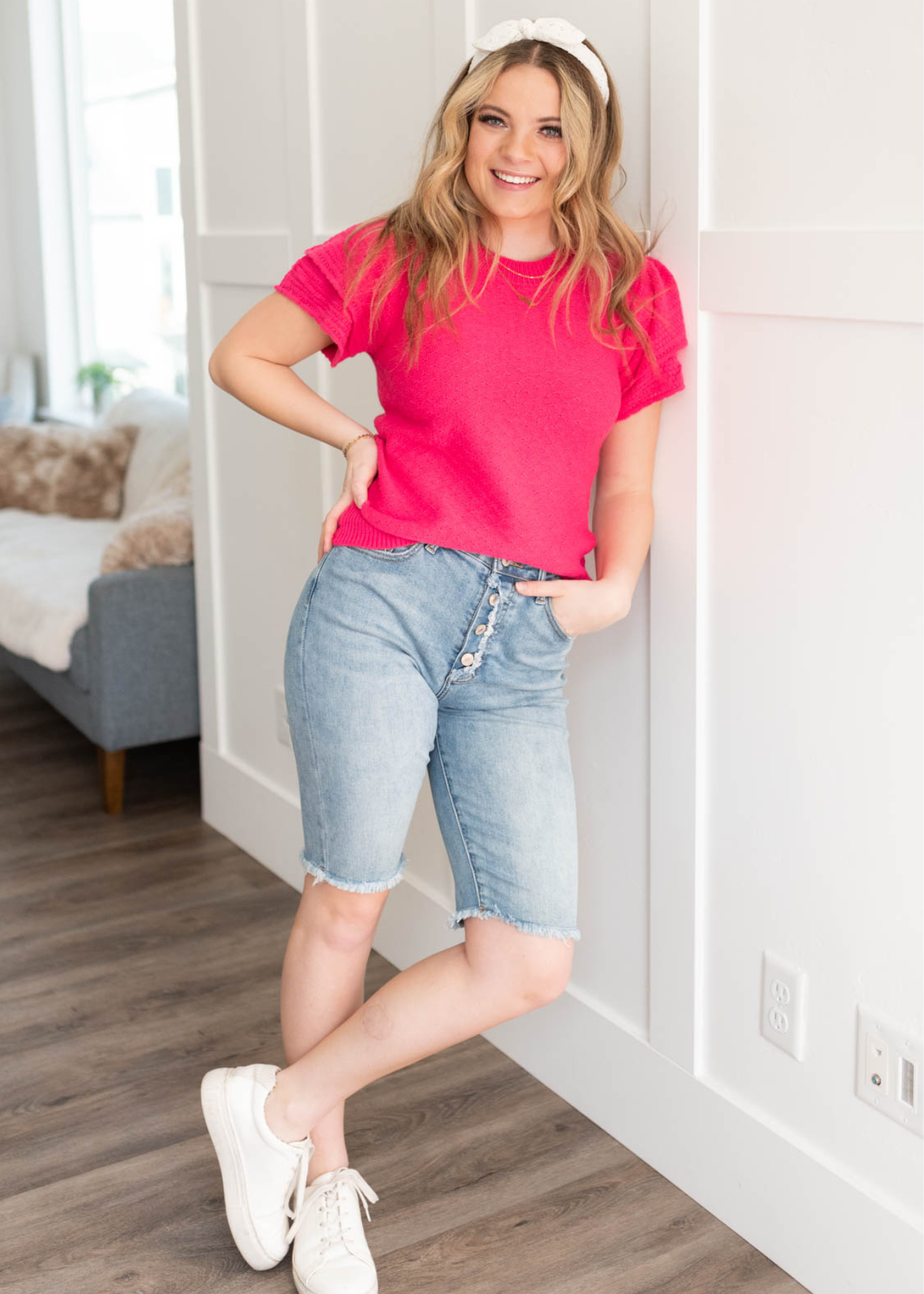 - Stunning bright fuchsia + soft textured fabric