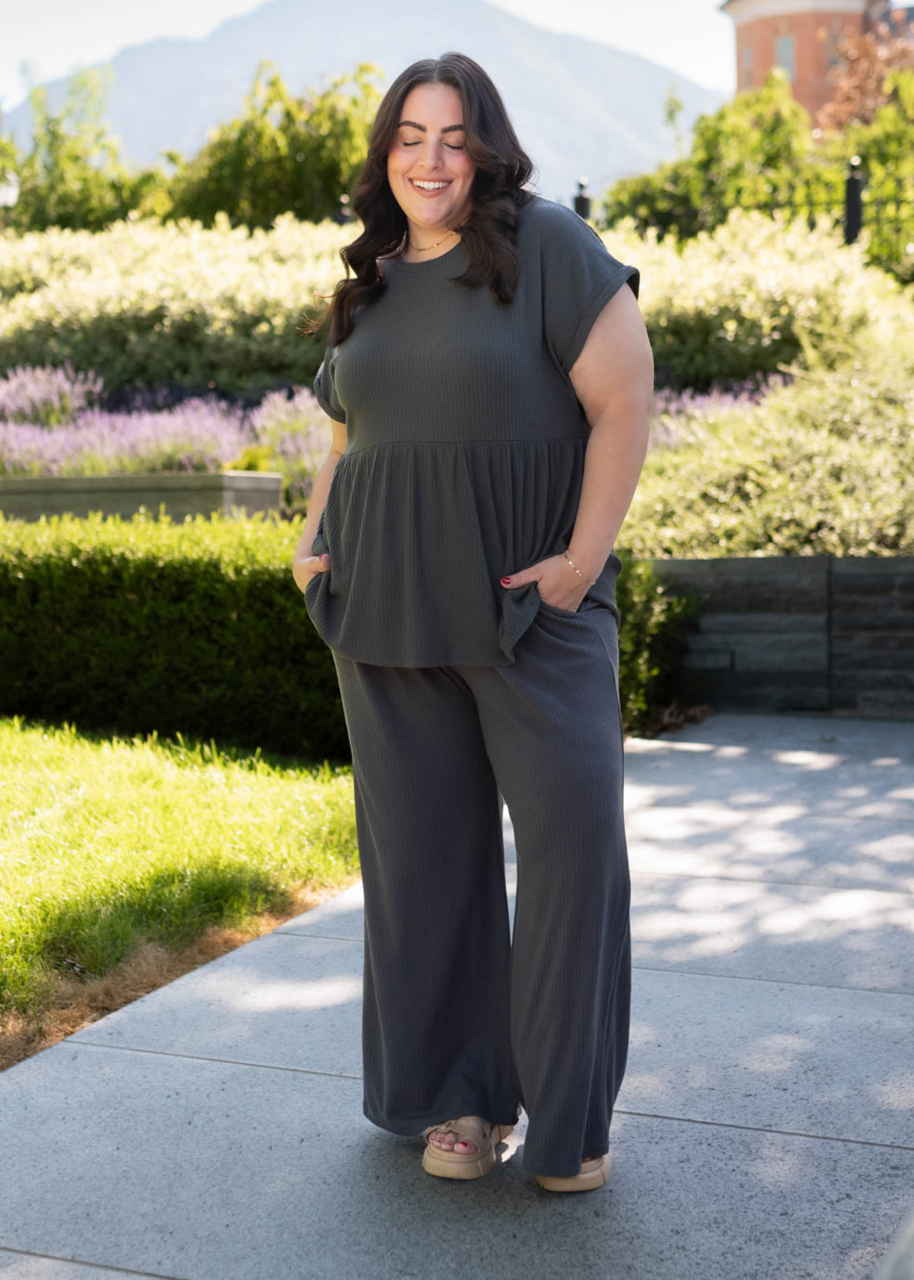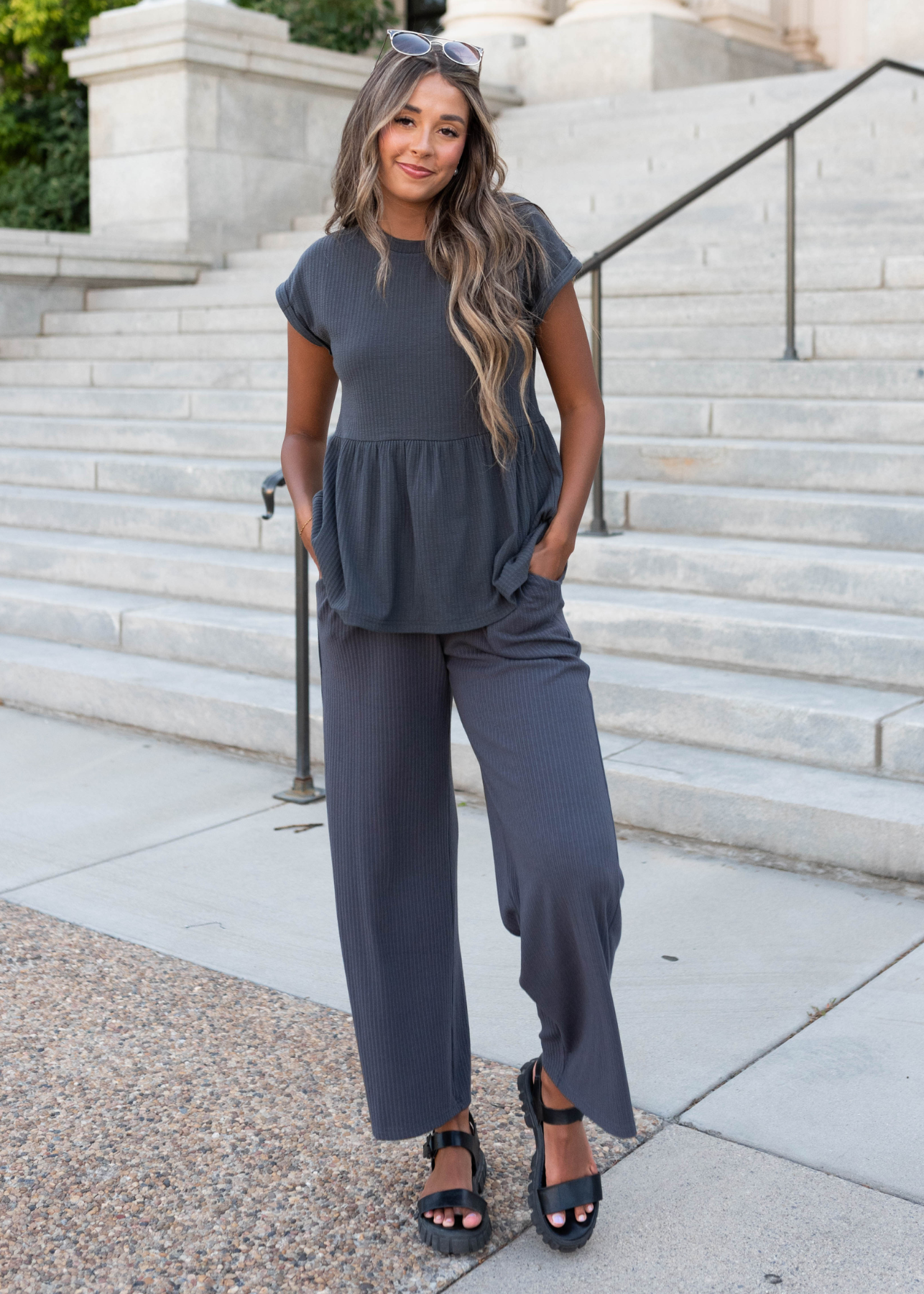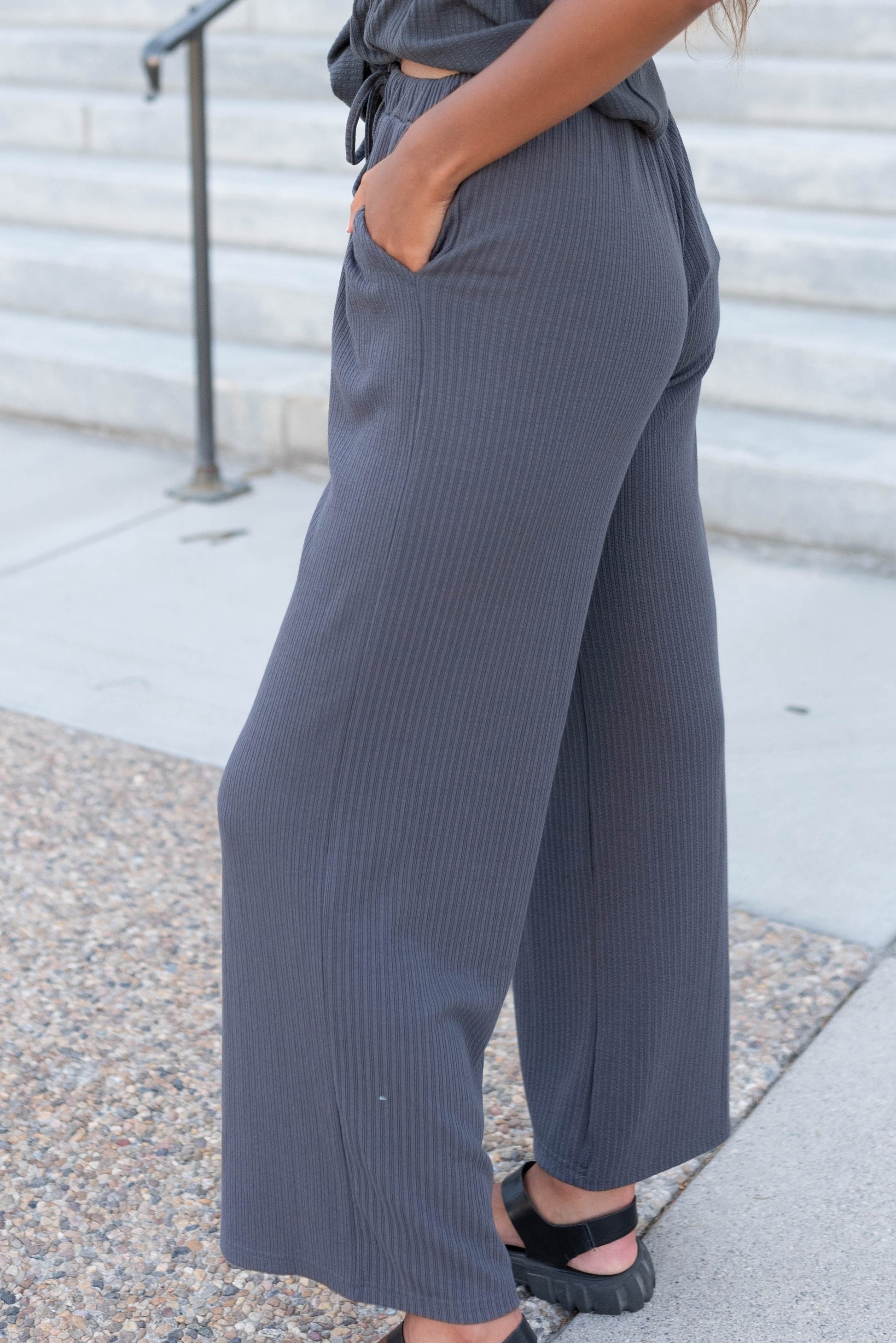 Tesa Charcoal Rib Knit Pants