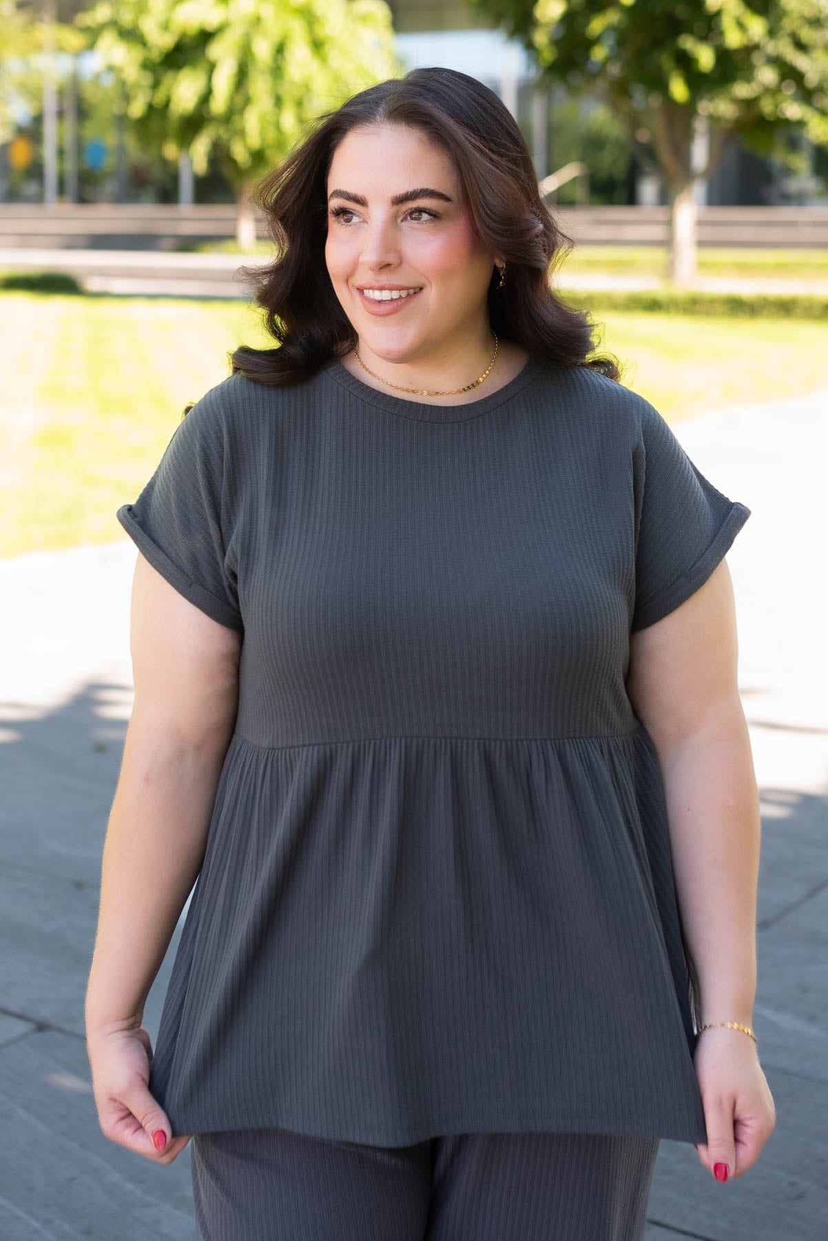 Tesa Charcoal Rib Knit Top