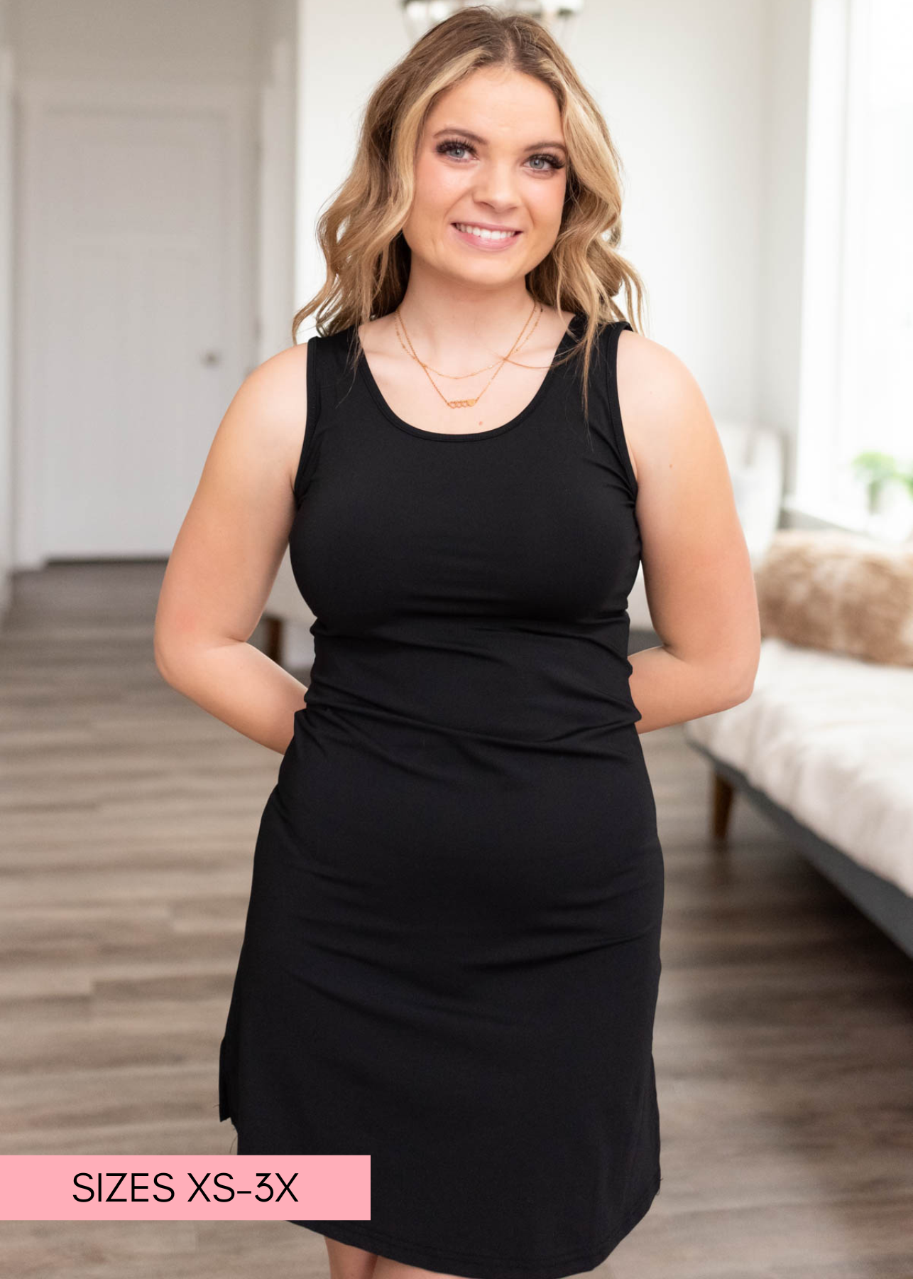 This one also features a tank top style, scoop neck hitting mid-thigh. Whether you choose to wear a shorter summer dress or a maxi dress, the slip will keep you feeling comfortable. Designed of polyester and spandex, it prevents irritation on your skin from your dress and allows it to hang smoothly from your body. With a bit of stretch, the slipette tank moves with you.