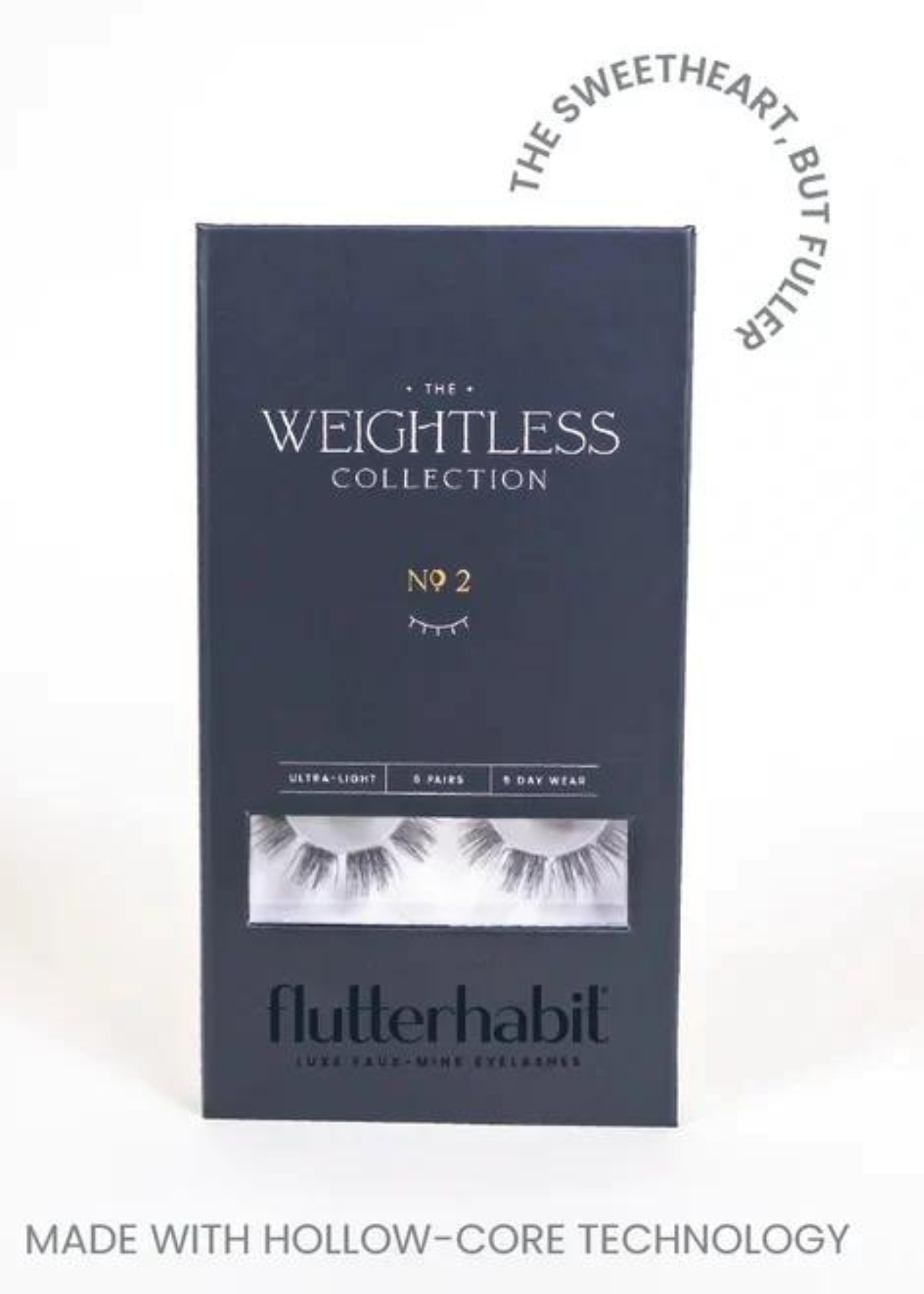 The Weightless No. 2 is the perfect marriage of our best selling length and NEW hollow core fiber technology. Perfect for any occasion, The Weightless No. 2 is a curly, doll-eyed lash that can be dressed up or down. The ultra-light, silky fibers feel as comfortable as your natural lash and wear even more gently for a feel you simply must experience to believe.