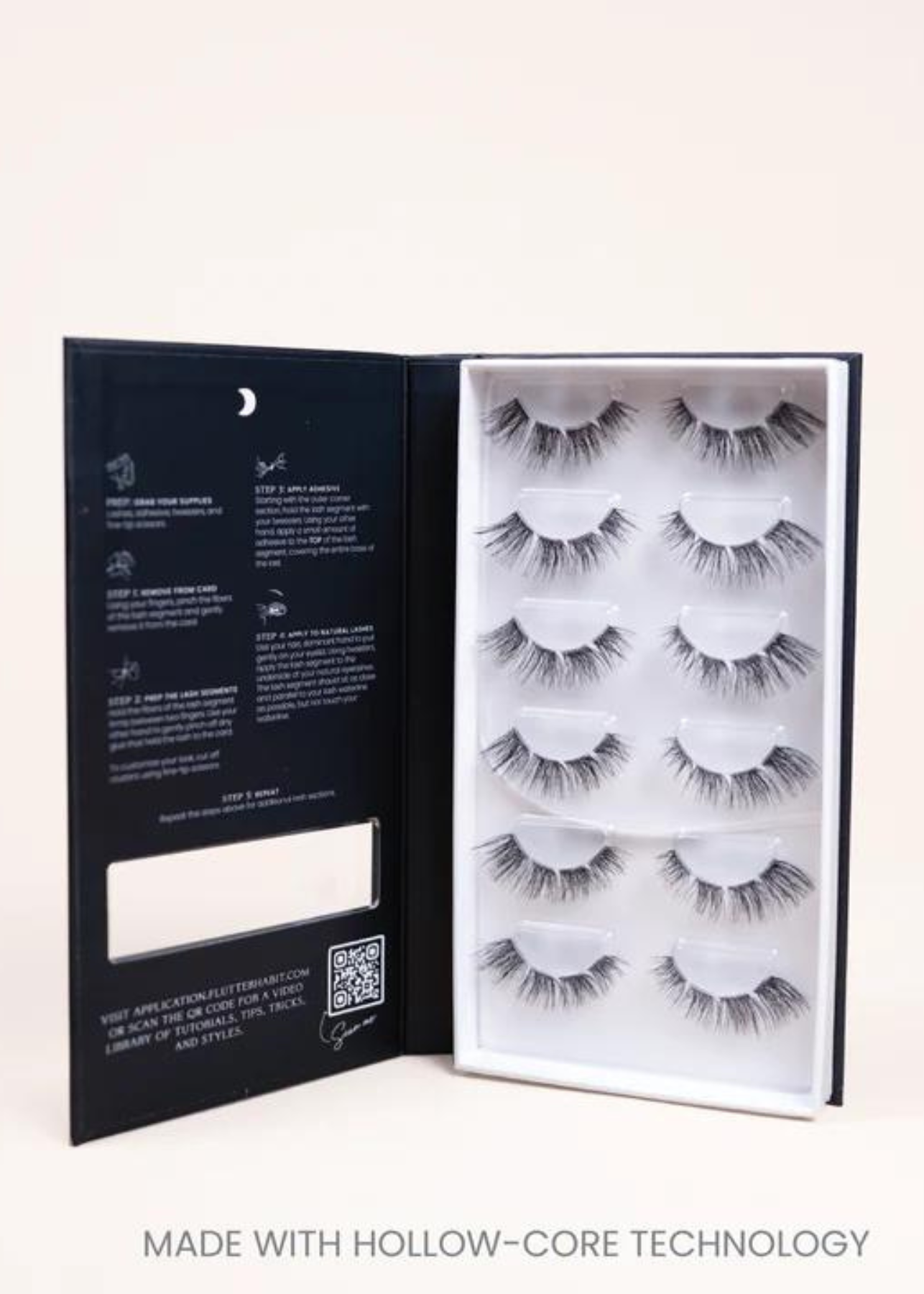 One of our most highly requested style additions has finally arrived! Weightless No. 4 is a super soft lash that effortlessly lifts the eyes thanks to a moderate curl and a fluffy, cat-eye shape. This style is the longest and most voluminous of our cat-eyed lashes. Thanks to our hollow-core fiber technology, Weightless No. 4 feels like nothing but looks like everything! Our long, fluffy, cat-eye lash, with fibers measuring from 9-19mm.