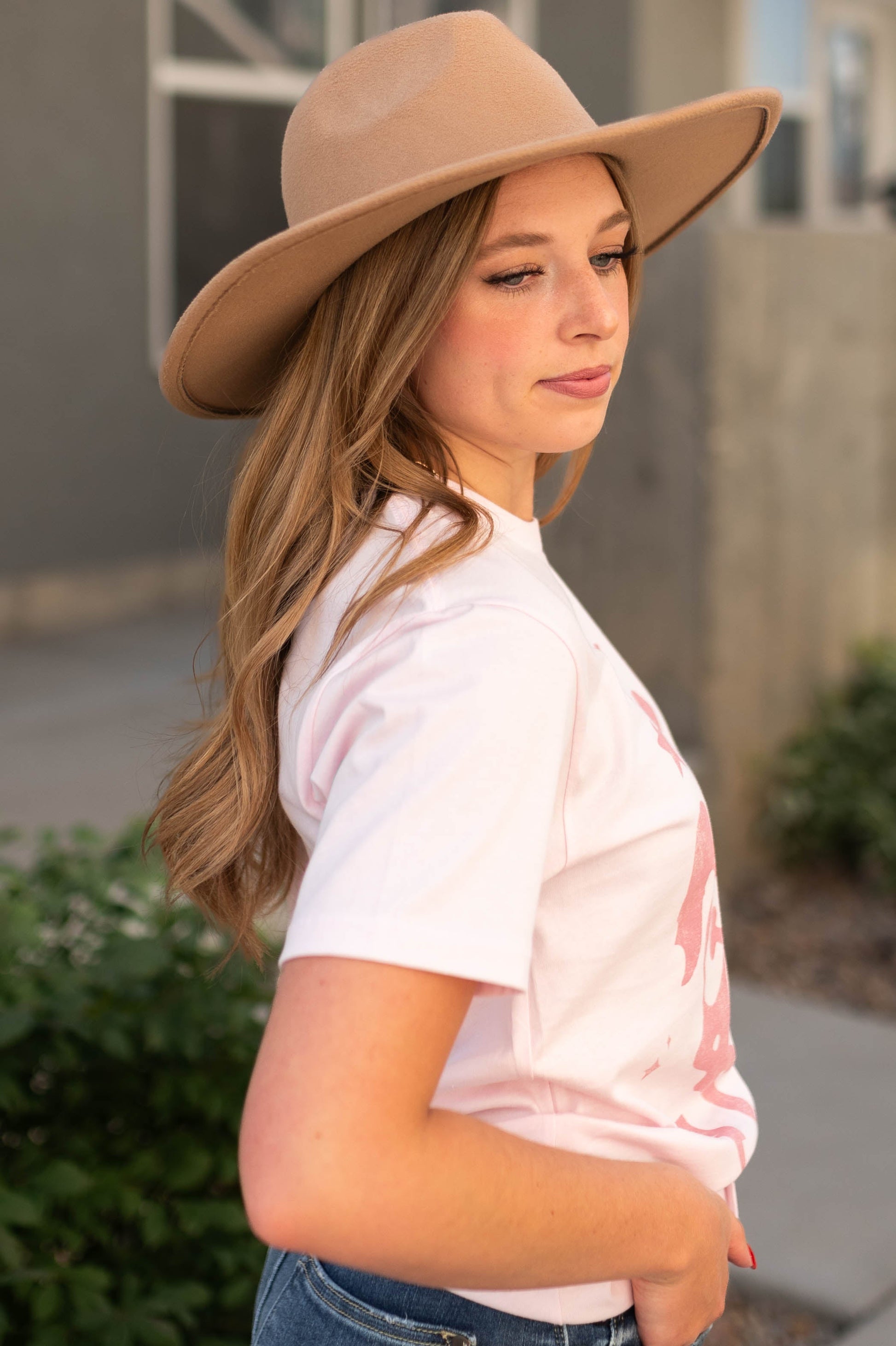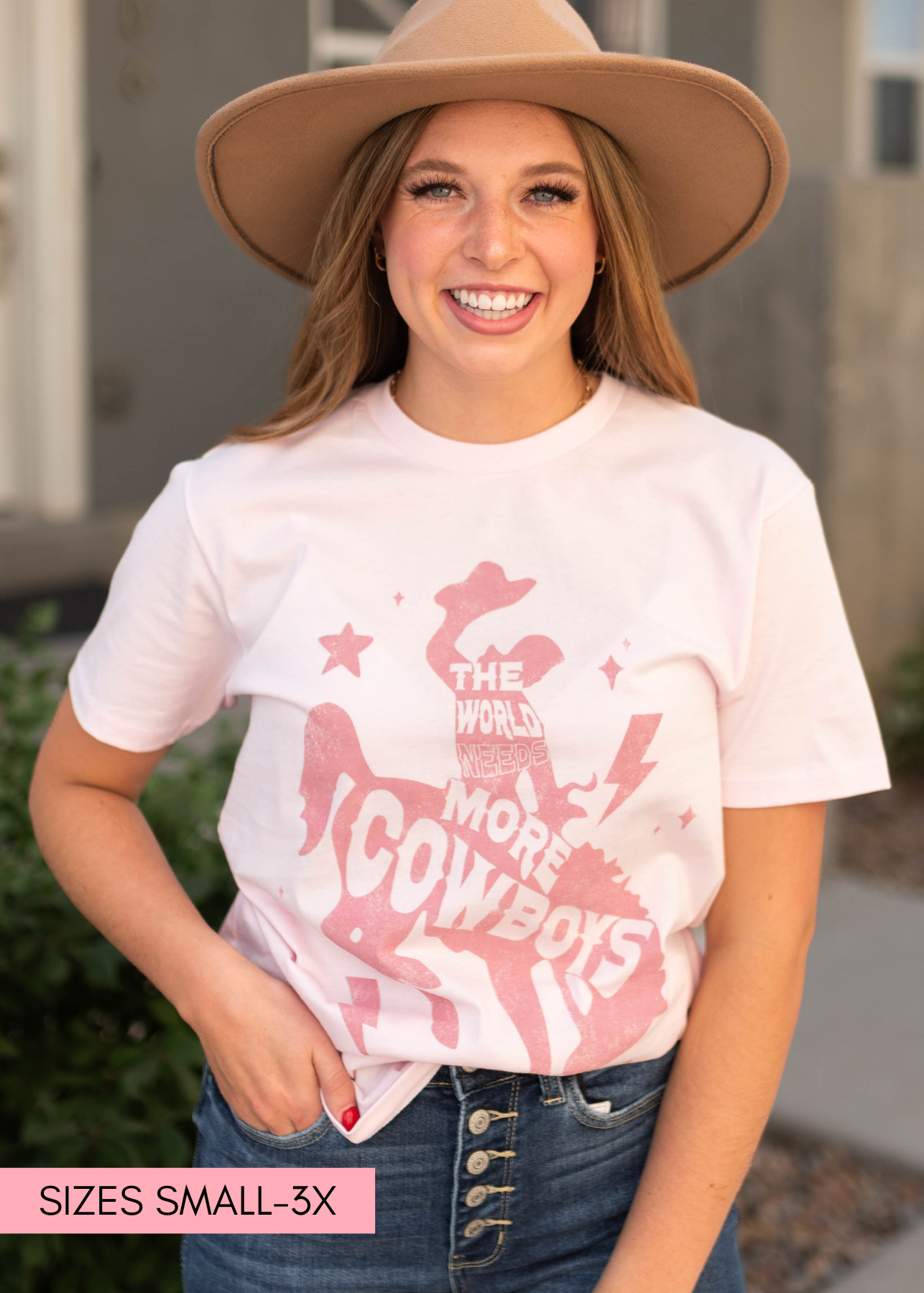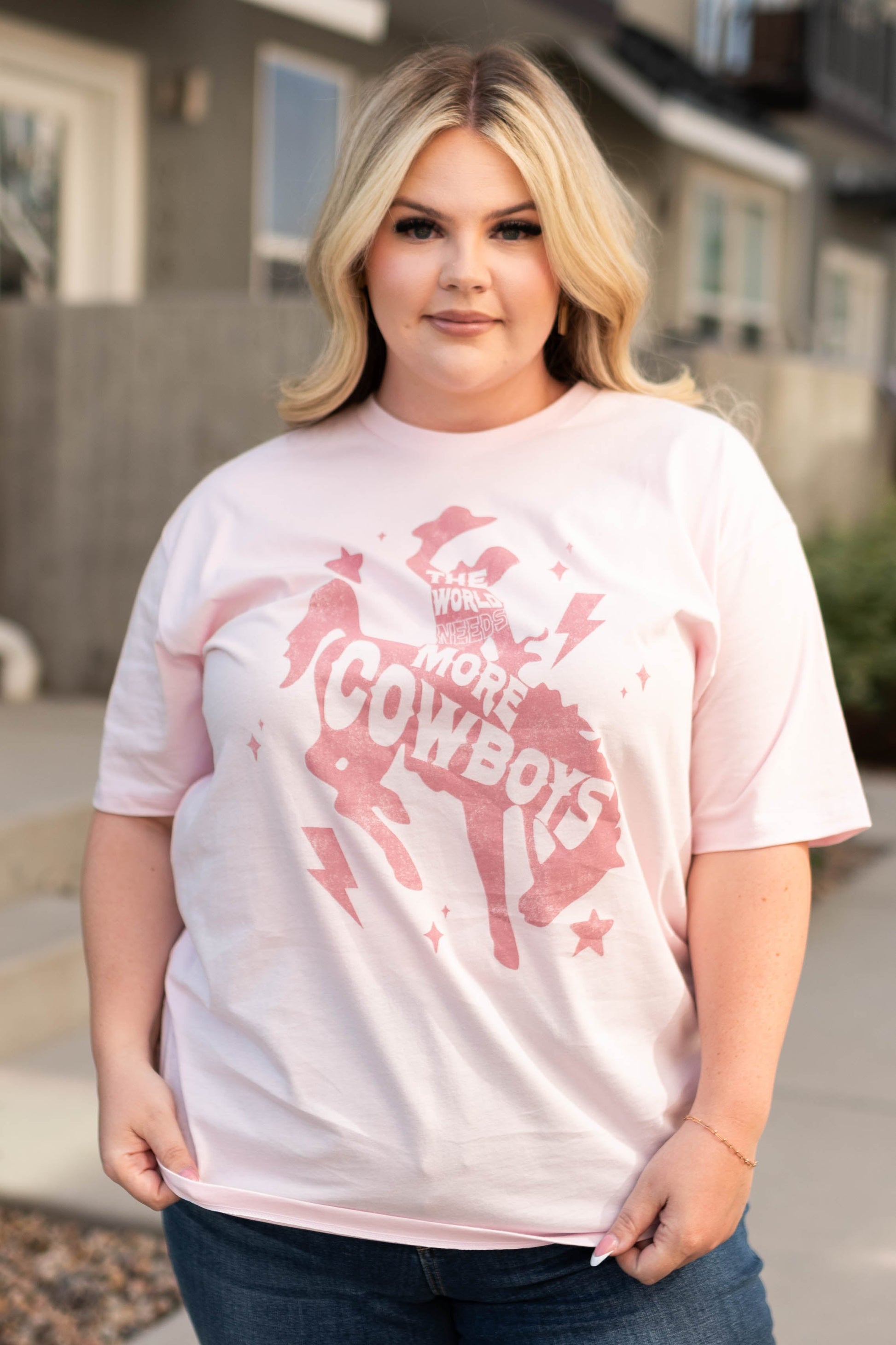 - Soft pink & the cutest "The World Needs More Cowboys" graphic