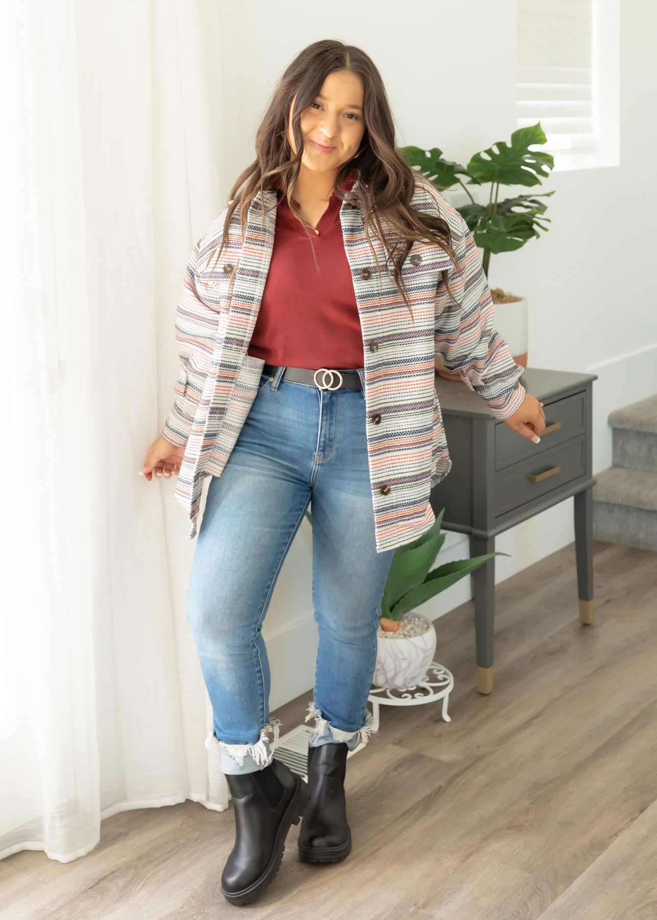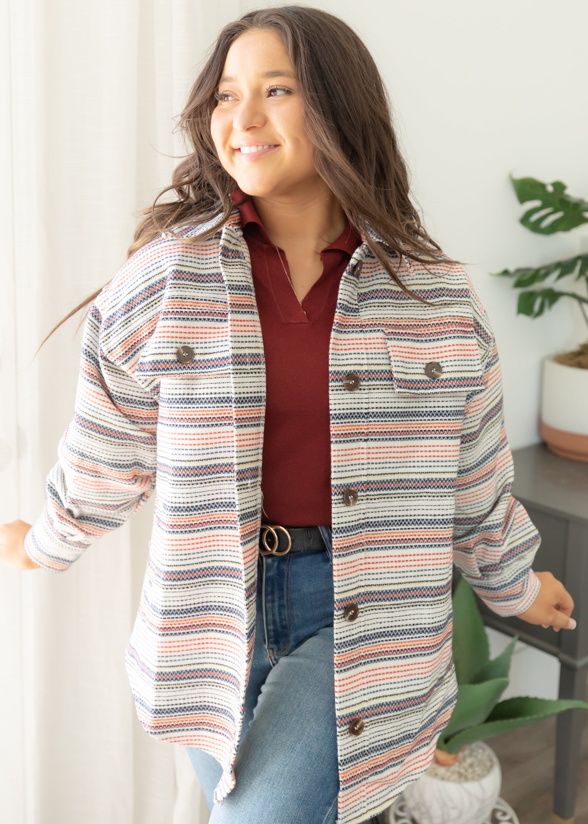 Thea Ivory Striped Shacket