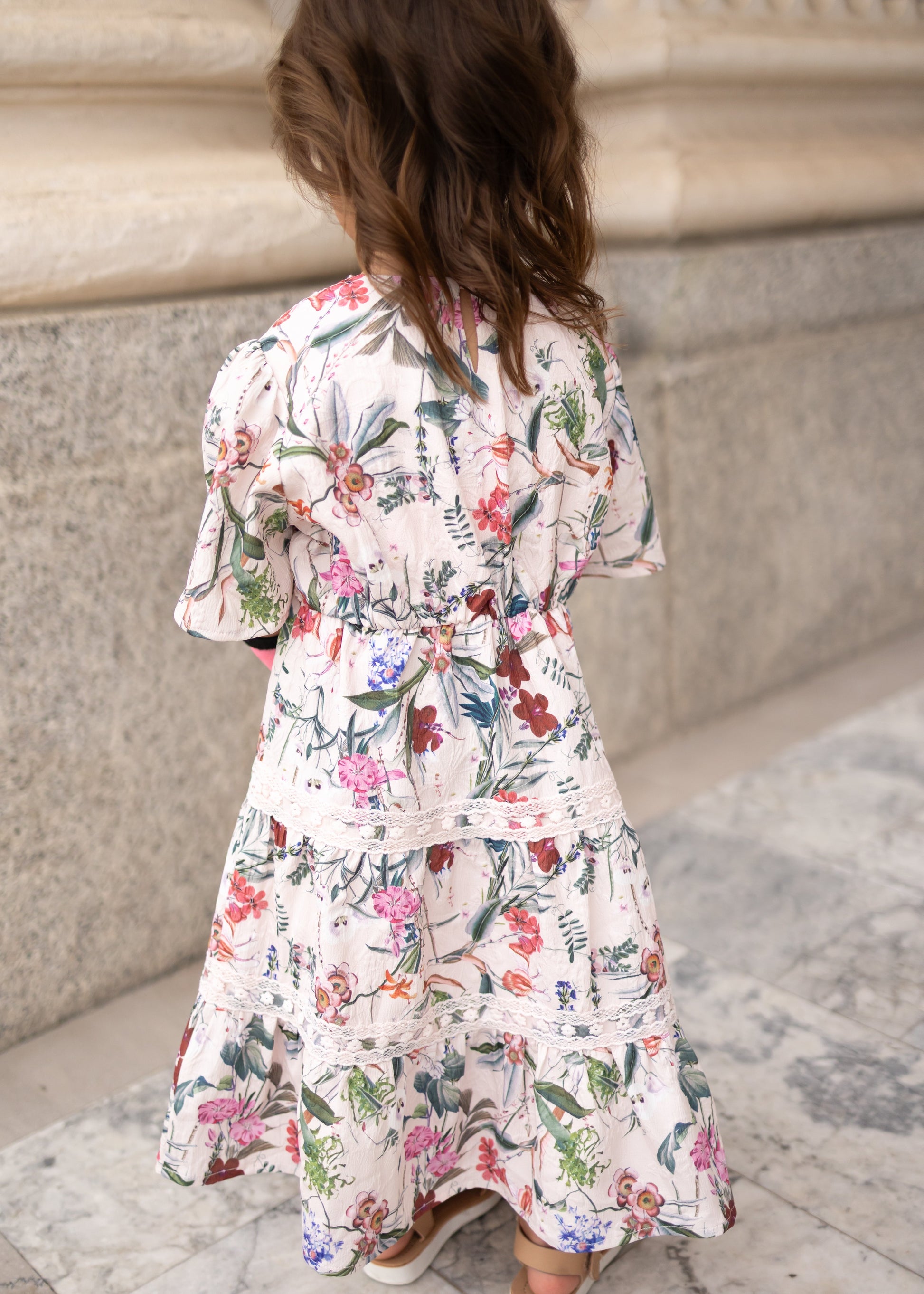 Zoie Pink Floral Tiered Little Girl Dress